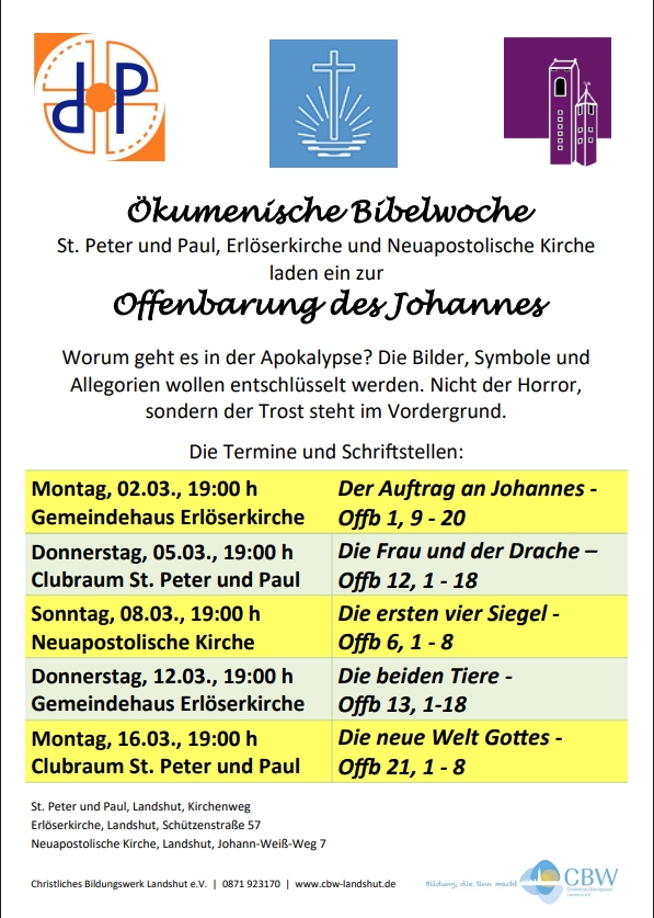 Im zumeist 14tägigen Turnus treffen sich Menschen, die Freude am Tanzen und Sich-Bewegen haben, im Pfarrsaal von St. Peter und Paul zum Meditativen Tanz.…