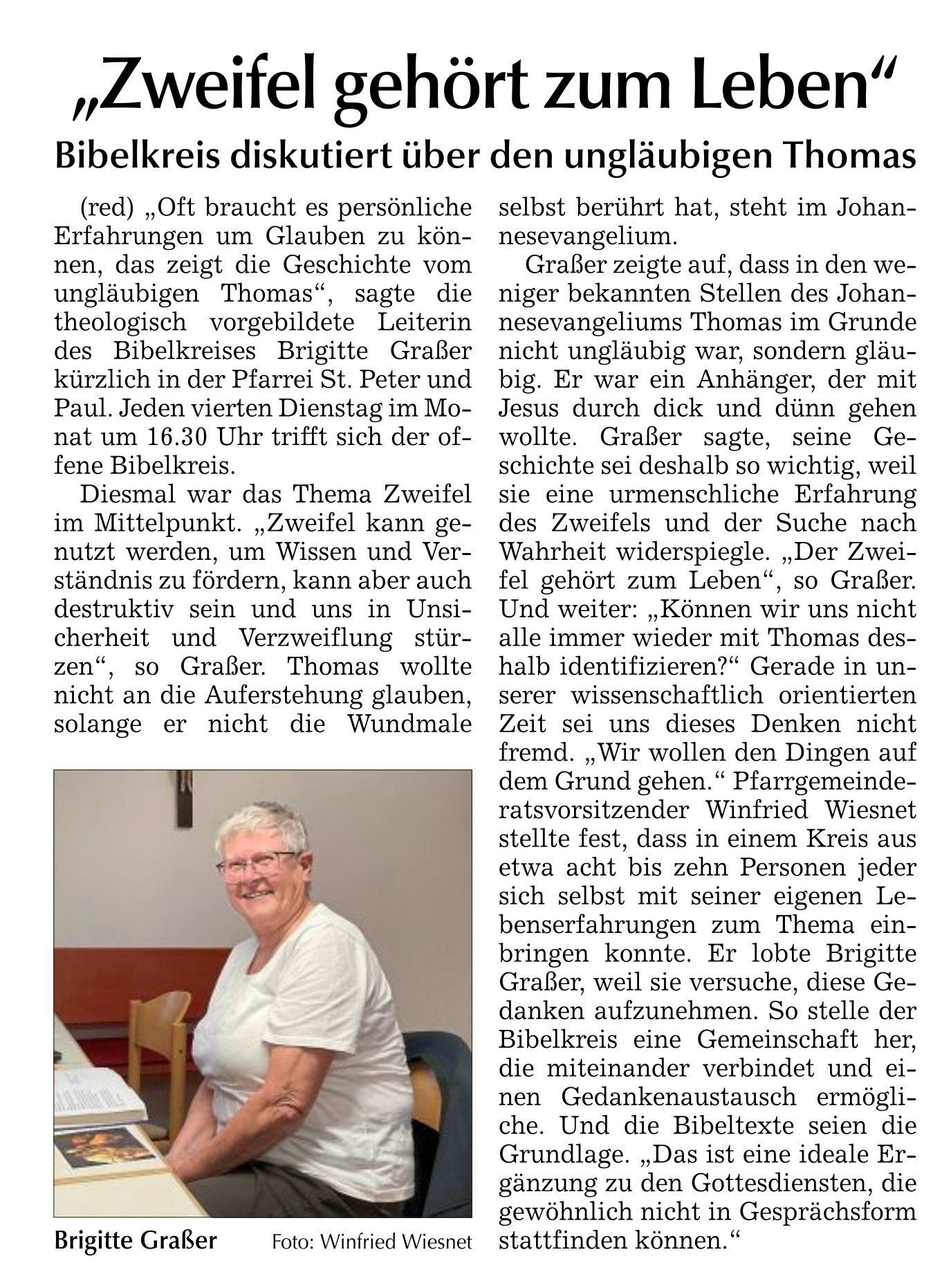 LZ 27.09.25 – Portrait: Der offene Bibelkreis unter der Leitung von Brigitte Graßer